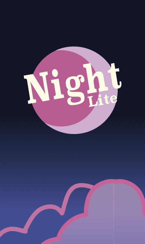 This didn't work for me, so I tried to a combination of blue and yellow. This time with the underlying idea not of candlelight, but moonlight. This concept stuck with me and coincidentally worked really well with the name I had come up with. I continued with this idea of capturing the night sky into a brand and experimented with gradients, different colors and how many clouds and stars should be present. Eventually, after many iterations, I came to the current design of Night Lite.