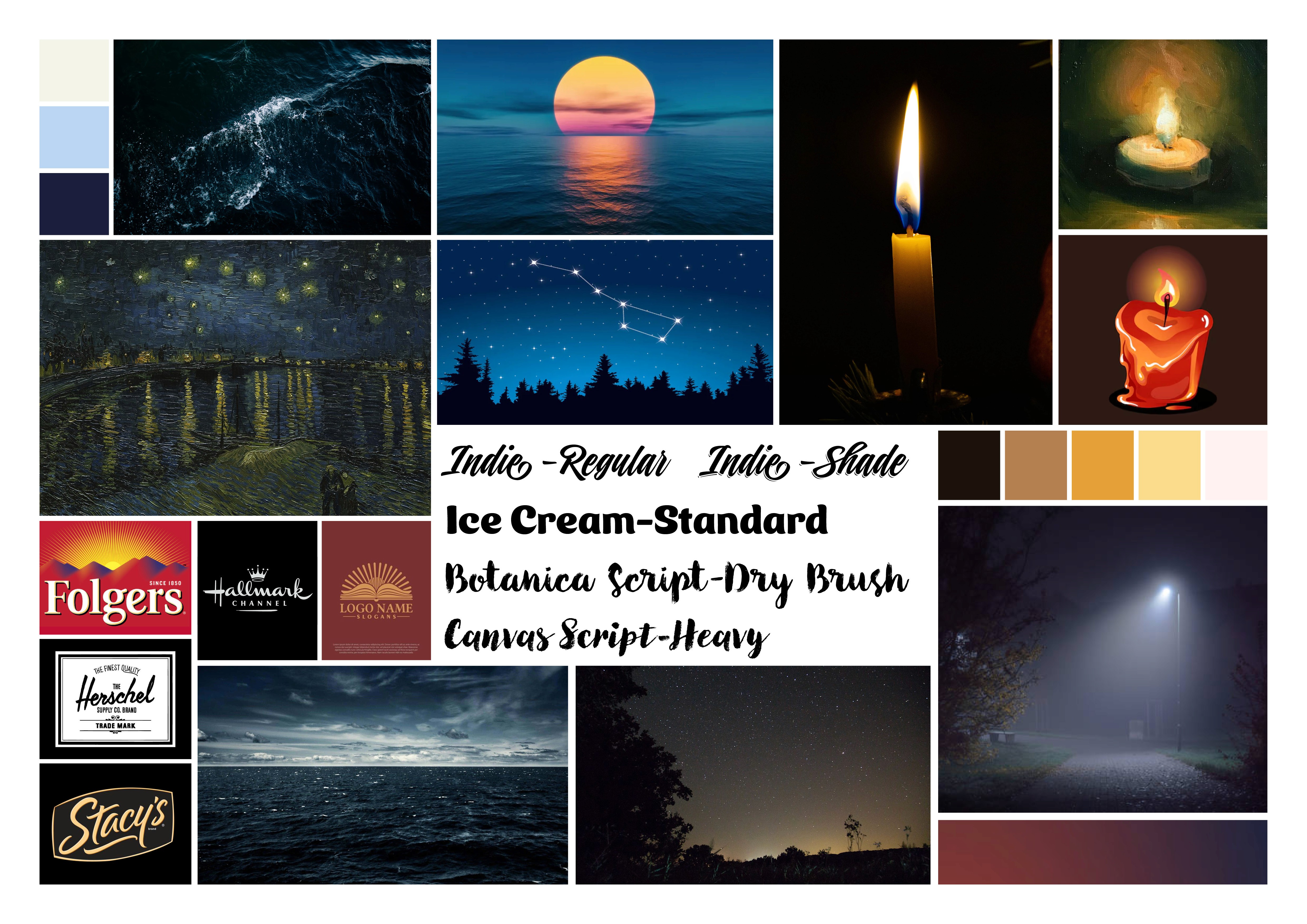 After considering many options, I ultimately decided to revolve the brand around a calm, melancholic, and cloudy night with the moon overhead. This is what nostalgia means to me. I chose to present the design in multiple colors because I wanted to see if my branding would still work if the brand wanted to expand.