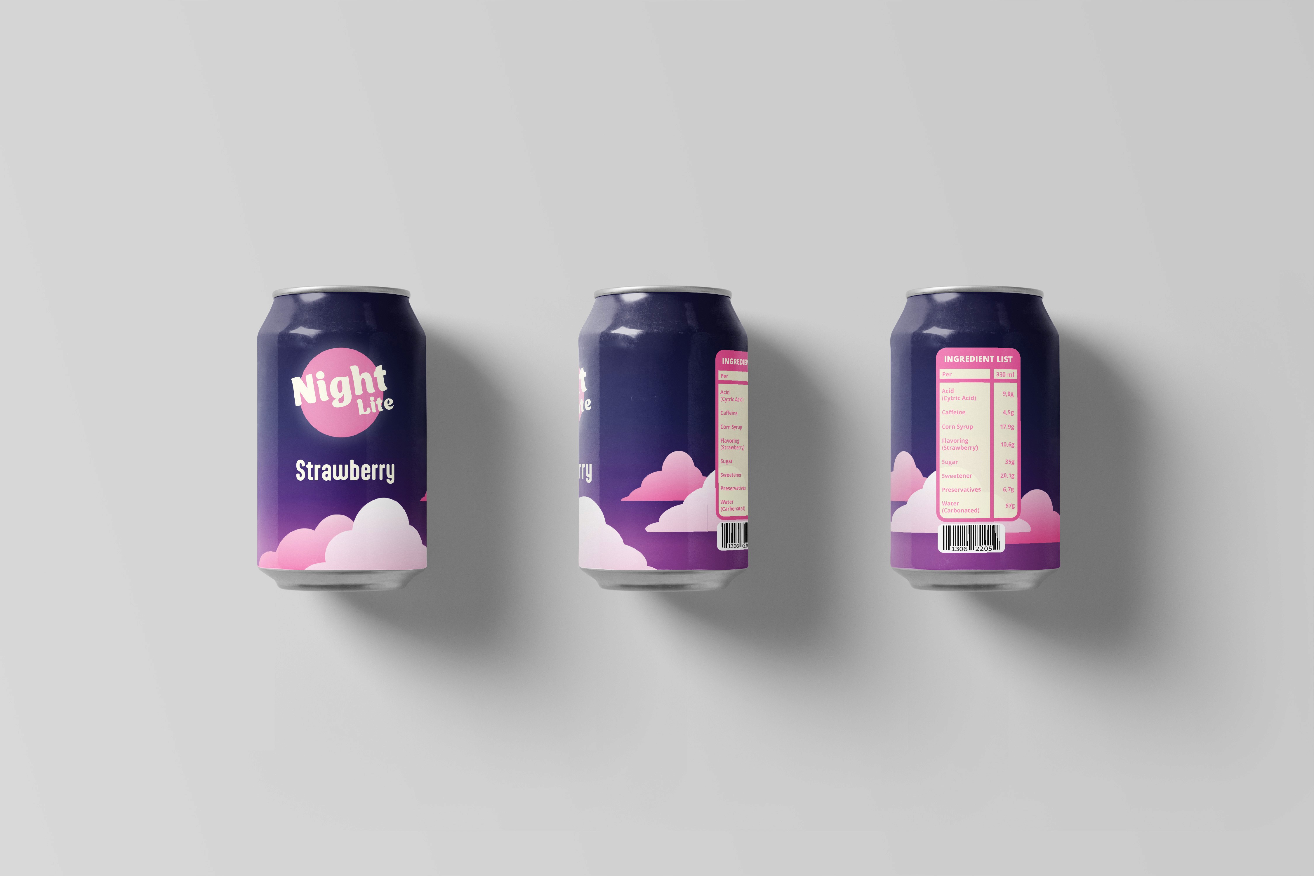 When asked to design a brand for a “nostalgic” beverage, I came up with Night Lite. The brand revolves around a cloudy night overseen by the moon. The elements I incorporated into the design, are based on my own idea of nostalgia, meant to represent a calm and melancholy night.