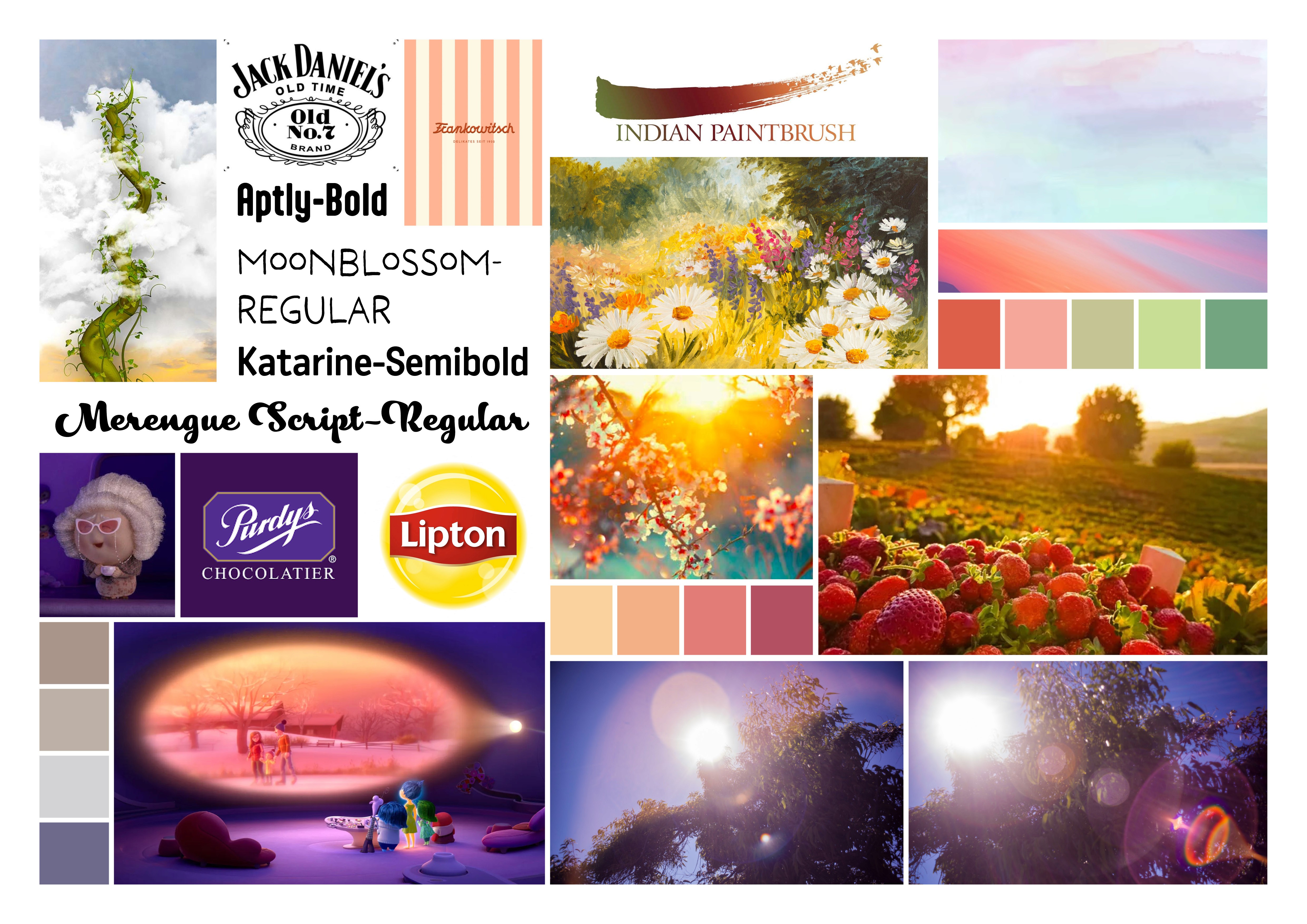 I created moodboards to map out my idea of what nostalgia really means. I kept compiled images of everything I associated with nostalgia. That's how I came up with the idea to incorporate a light-dark contrast into my design. That, to me, is what a nostalgic brand should The idea would become the common thread for the branding of the beverage.